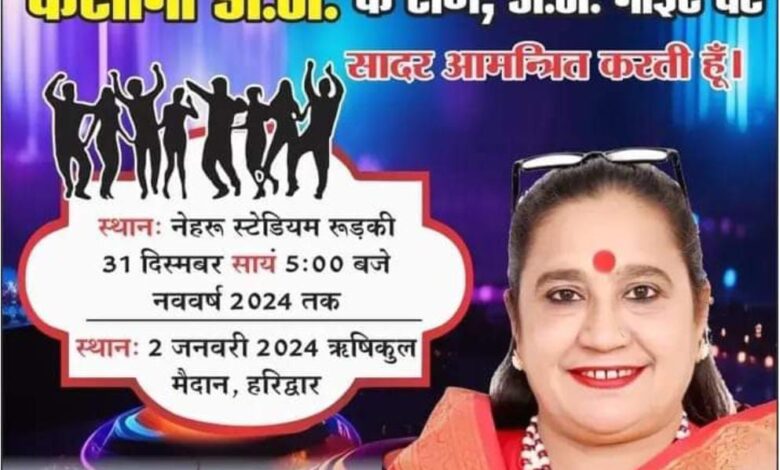 हरिद्वार। उत्तराखंड की बेटी, वरिष्ठ राज्य आंदोलनकारी, प्रसिद्ध जनसेवी, जनता कैबिनेट पार्टी (जेसीपी) की केंद्रीय अध्यक्ष एवं हरिद्वार लोकसभा क्षेत्र से दमदार प्रत्याशी भावना पांडे आने वाले साल को यादगार बनाने जा रही हैं। भावना पांडे नये साल के अवसर पर 31 दिसम्बर यानी आज शाम नववर्ष की पूर्व संध्या पर एक भव्य कार्यक्रम आयोजित करने जा रही हैं। लोकसभा प्रत्याशी भावना पांडे अपने अलग अंदाज के लिए पहचानी जाती हैं। अपने इसी अंदाज के चलते वे आम जनता के लिए इस कार्यक्रम को आयोजित कर रही हैं। नये साल के इस कार्यक्रम का आयोजन हरिद्वार क्षेत्र स्थित रूड़की के नेहरू स्टेडियम में आज सांय 5 बजे से लेकर नववर्ष 2024 के आगमन तक होगा। वहीं एक अन्य आयोजन 2 जनवरी 2024 को हरिद्वार के ऋषिकुल मैदान पर भी किया जायेगा। इस भव्य कार्यक्रम का मुख्य आकर्षण मेरठ का मशहूर कसाना डीजे होगा, जो नये साल के इस कार्यक्रम को यादगार बना देगा।